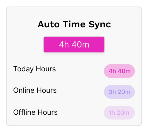 TimeBee continues tracking essential employee metrics even without an internet connection. While offline, it records activity levels such as mouse clicks and keystrokes, monitors web and app usage, logs time on projects and tasks, captures screenshots, detects idle time, and maintains accurate work timelines. All data is securely stored locally during offline periods and automatically synced once the internet connection is restored. This ensures complete visibility and accurate records without interruptions.