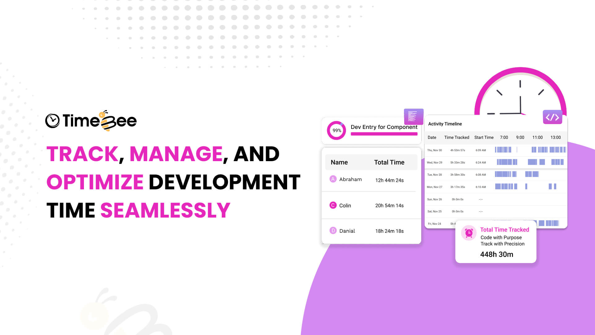 TimeBee simplifies software development time tracking with billable hours, activity summaries, and payroll.